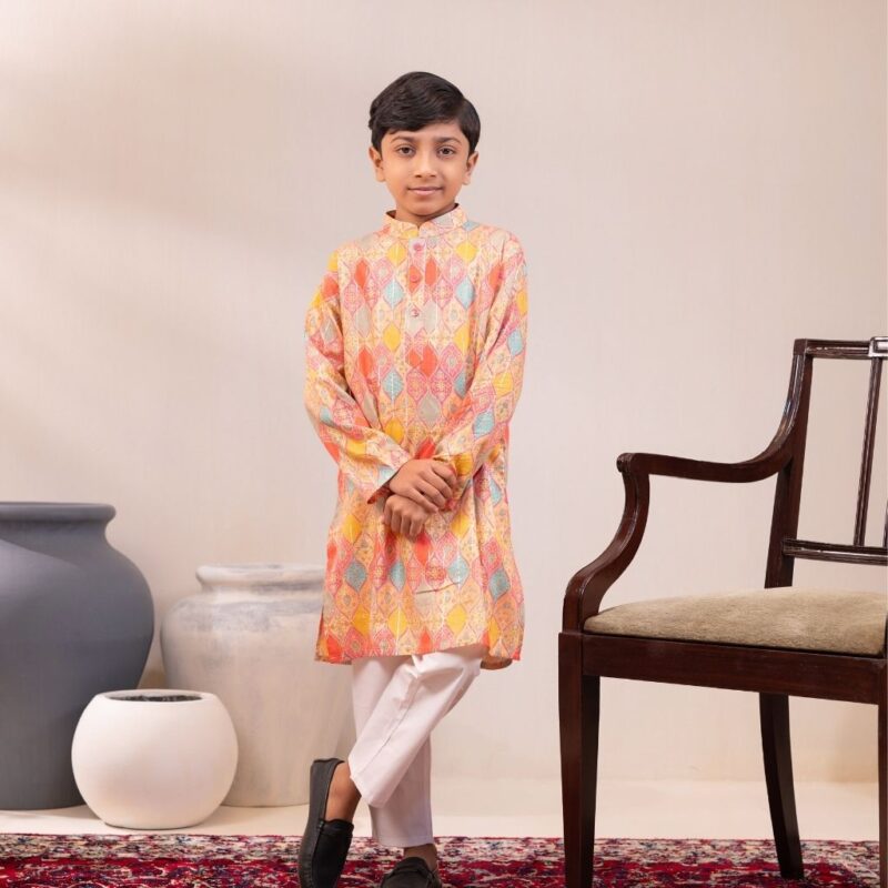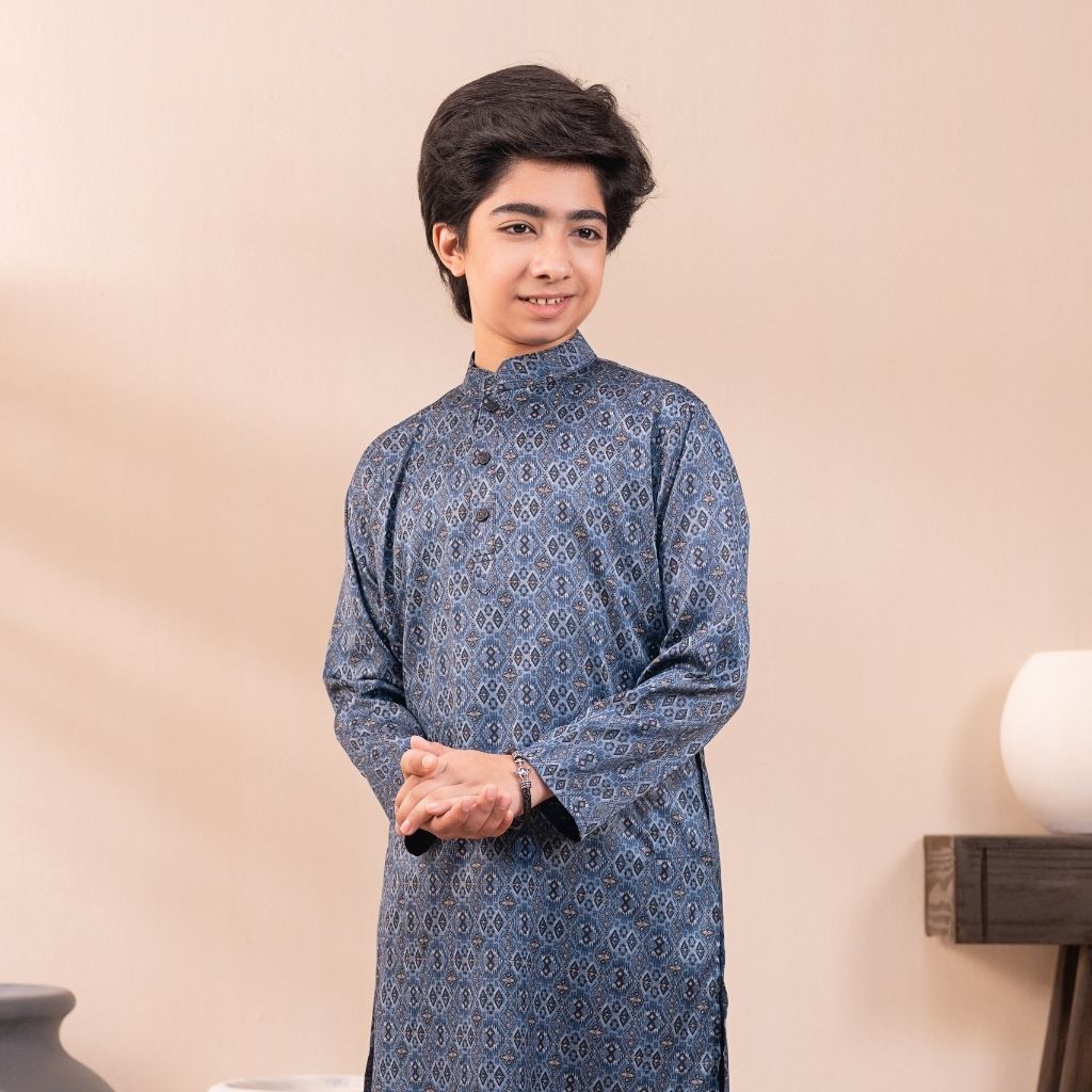 Premium boys’ panjabi with refined prints and elegant detailing.