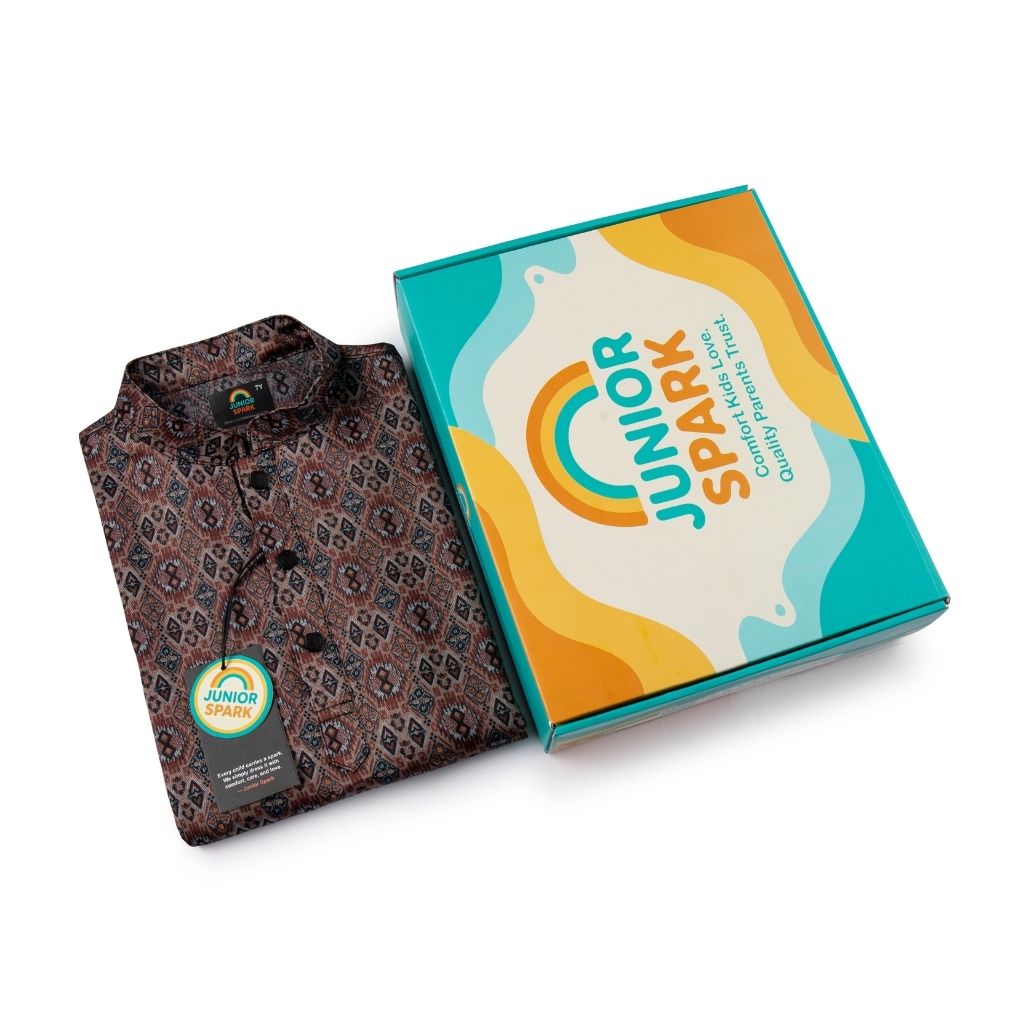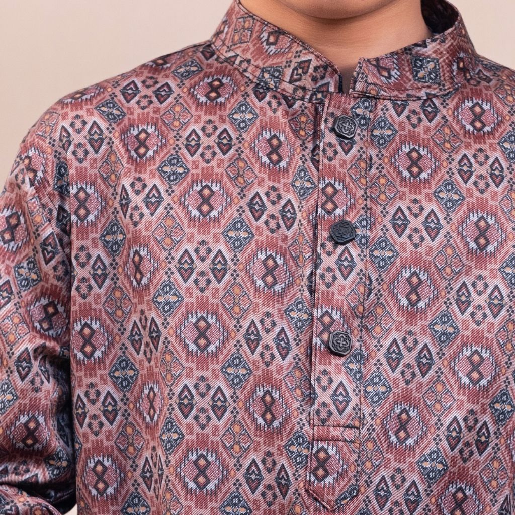 A classic all-over geometric motif Panjabi designed to bring a refined festive feel to your child’s wardrobe. Easy to pair with a crisp white payjama, this piece is perfect for parents who want a timeless Eid look with premium comfort and effortless elegance.