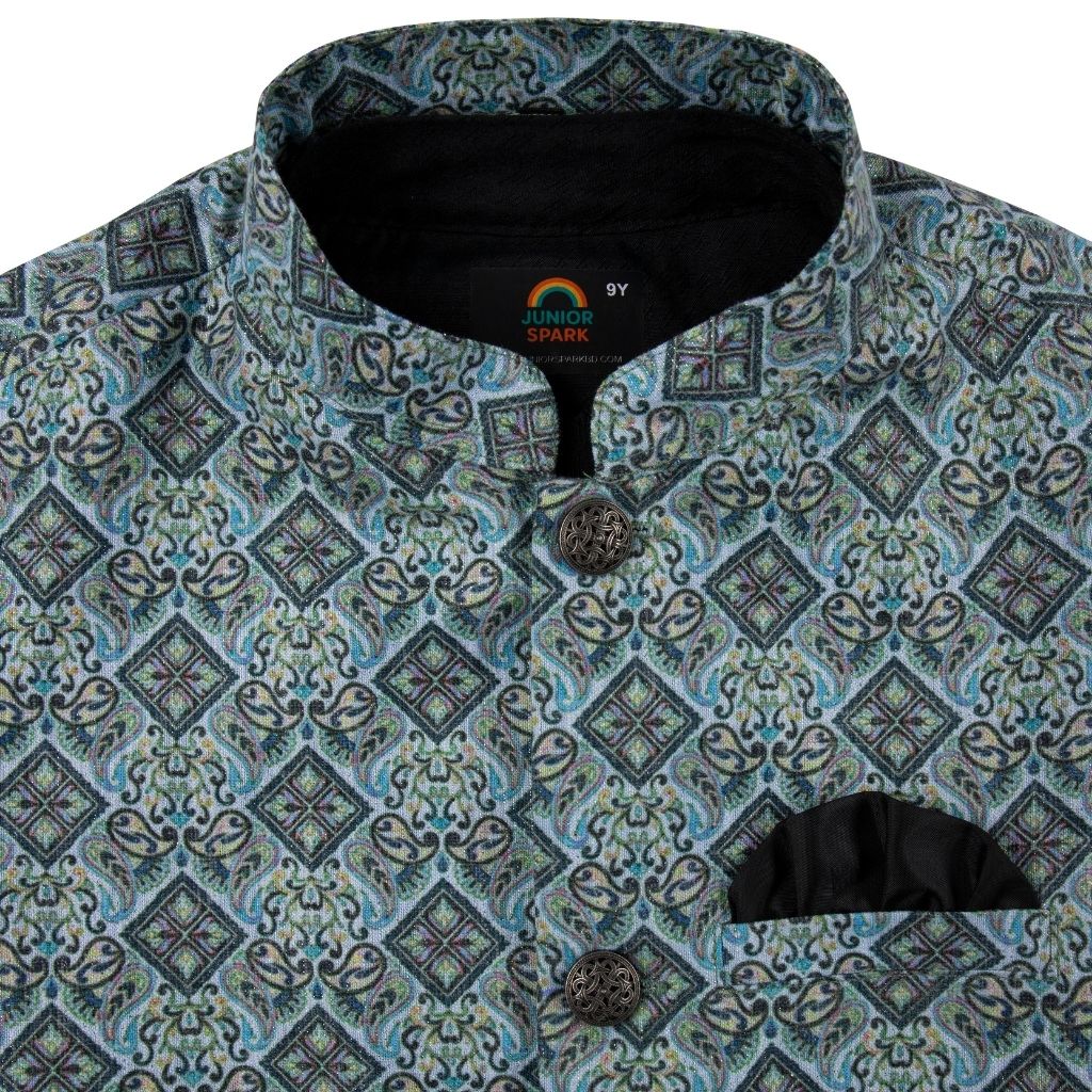 Celebrate Eid with refined elegance through this premium boys’ festive ensemble. The set features a soft black textured Panjabi paired with a stylish printed sleeveless koti and a comfortable cotton payjama. Thoughtfully designed for both style and comfort, this outfit offers a perfect balance of traditional charm and modern layering.
